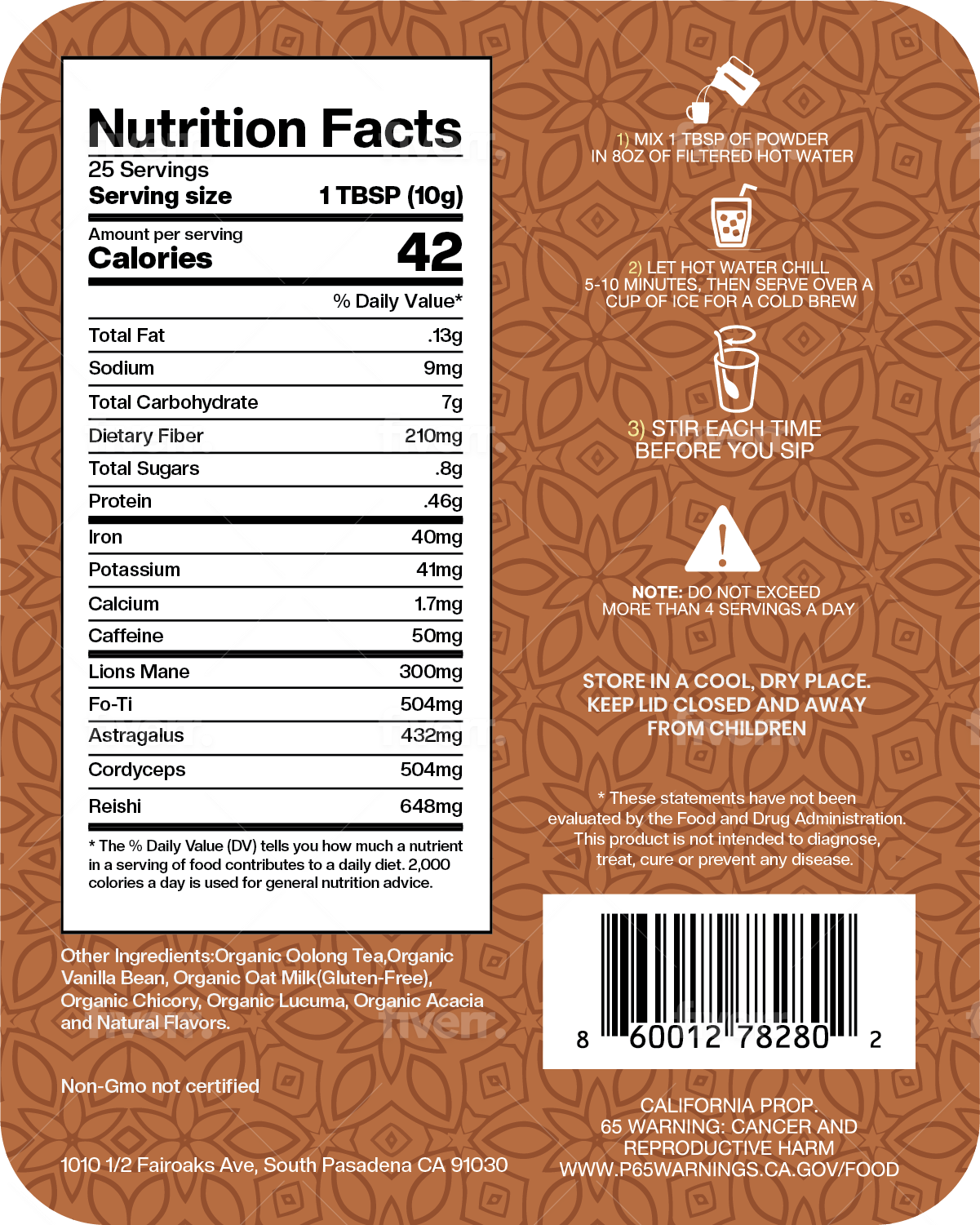 Organic Chicory, Organic Oolong tea, Organic Oat Milk, Organic Lions Mane, Organic
